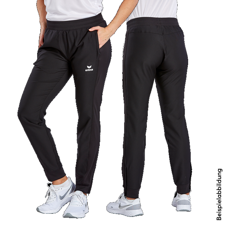 Für einen einheitlichen Auftritt beim Wettkampf oder Spiel! Die Präsentationshose ist aus einem leichten Funktionsmaterial gefertigt, das dank optimaler Temperaturregulierung einen hohen Tragekomfort bietet. Außerdem ist das Material sehr elastisch, sodass du volle Bewegungsfreiheit genießen kannst. Diese wird durch die seitlichen Stretch-Einsätze ergänzt. Für einen optimalen Sitz und eine hervorragende Passform kommt die Hose mit einem breiten Bund mit Kordelzug und flexiblen Bündchen am Beinabschluss. Dank dem speziellen Damenschnitt umspielt sie jede Figur perfekt. Super praktisch ist der Reißverschluss am Beinabschluss für ein einfaches An- und Ausziehen. In den seitlichen Reißverschlusstaschen verstaust du deine Wertsachen sicher.